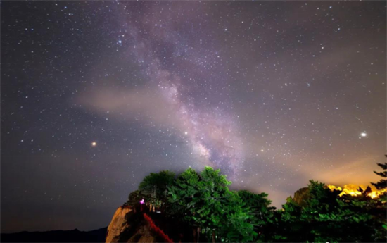 夜深時(shí),繁星璀璨,浪漫星空的樂章開始奏響。在城市里,你有多久沒有看到過無垠的星空?華山之巔,一輪朗月靜靜懸在漆黑的夜幕之上。在這里,星空依然閃耀,月色依然純潔溫暖。拋開一切疲倦,用最無憂的心聆聽星空獨(dú)特的音韻,享受大自然最真切卻最奢侈的美,留下在華山和天空擁抱的味道。