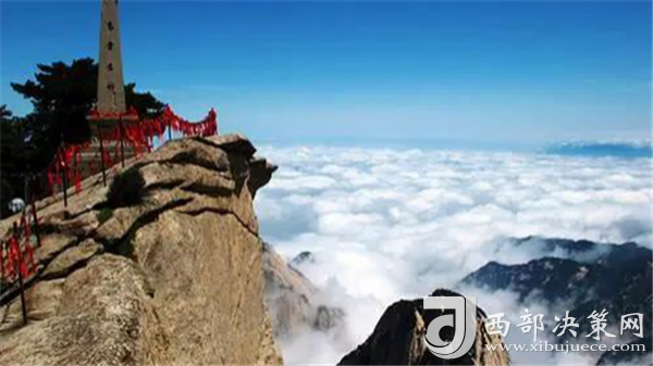 南峰落雁峰 為華山之巔,天近咫尺,星斗可摘。舉目環(huán)視,但見云海如帛如綿,盡收眼底。