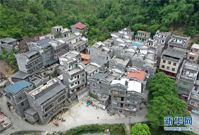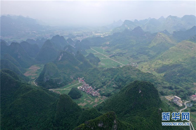 這是廣西環(huán)江毛南族自治縣下南鄉(xiāng)中南村南昌屯民居(5月13日攝,無人機(jī)照片)。