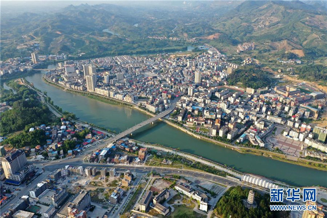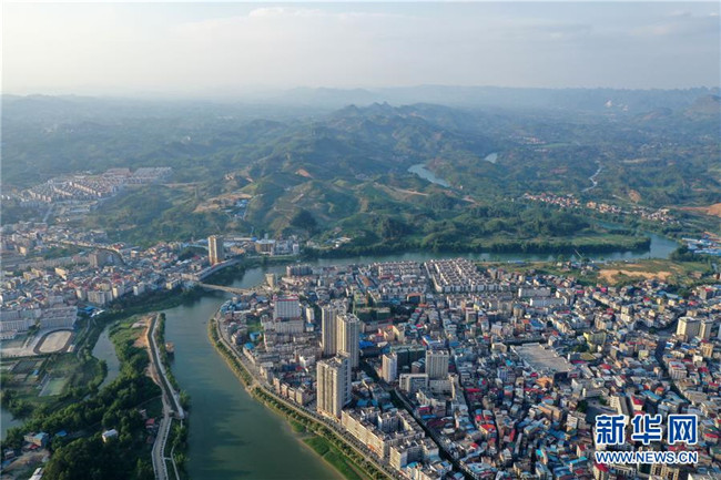 這是廣西環(huán)江毛南族自治縣縣城風(fēng)貌(5月14日攝,無人機(jī)照片)。