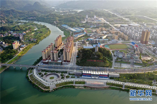 這是廣西環(huán)江毛南族自治縣城西移民安置區(qū)(5月14日攝,無人機(jī)照片)。