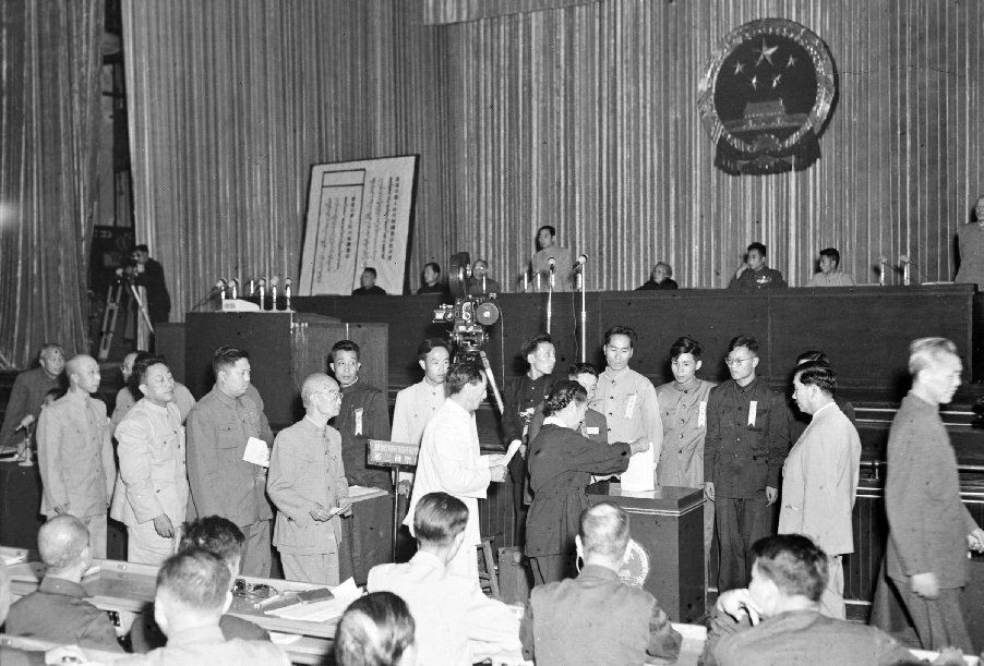 1954年9月15日,出席第一屆全國人民代表大會第一次會議的代表進(jìn)入中南海懷仁堂。