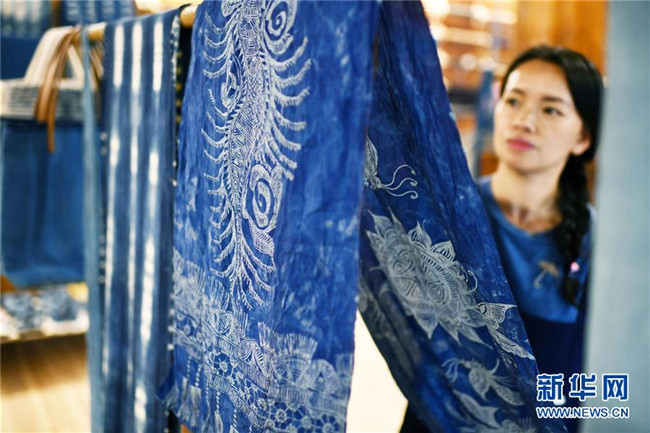 2018年,楊成蘭在村里成立傳統(tǒng)織染合作社,吸引村里及周邊村寨貧困戶入股,帶動(dòng)當(dāng)?shù)刎毨艉痛迕窦尤牒献魃?,從事織布、染布、藍(lán)靛種植等產(chǎn)業(yè),在傳承民族傳統(tǒng)手工技藝的同時(shí),幫助村民脫貧增收。