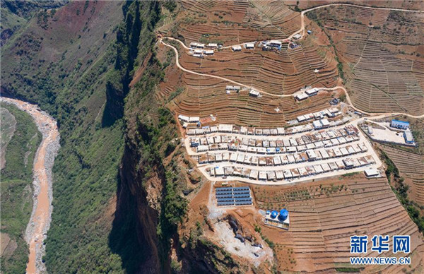 這是西溪河峽谷邊的四川省金陽(yáng)縣老寨子村集中安置點(diǎn)(6月4日攝,無(wú)人機(jī)照片)。