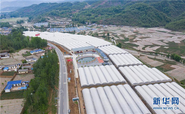 俯瞰四川省布拖縣拉達(dá)鄉(xiāng)特爾村的集中安置點(diǎn)和農(nóng)業(yè)示范園區(qū)(5月18日攝,無(wú)人機(jī)照片)。新華社記者江宏景攝