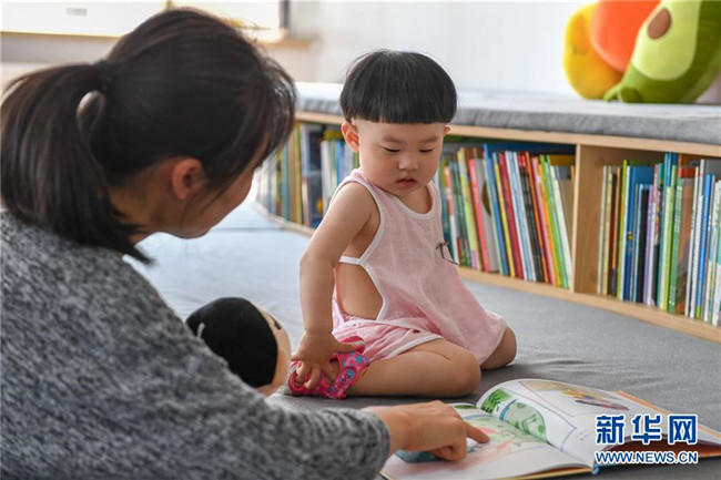 7月2日,在長春市少年兒童圖書館平陽社區(qū)繪本主題分館,家長為小朋友講故事。新華社記者 張楠 攝