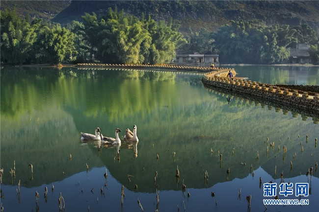 近年來,靖西市將渠洋湖作為重點旅游項目進行開發(fā)。“我們對渠洋湖景區(qū)計劃投入3億元的建設資金,打造水上娛樂、游覽度假勝地,現已投入了1.4億元左右。主要投入用于增高整個水庫容量的水位、環(huán)湖污水處理系統(tǒng)、環(huán)湖景觀綠化,目前已增加了17艘電動觀光游船、新建了一個水寨碼頭。”靖西市新發(fā)展投資集團項目部人員趙英建說。渠洋湖開發(fā)后,慕名而來的游客絡繹不絕,旅游業(yè)蓬勃發(fā)展起來。