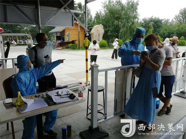 在游客入口處,工作人員正在逐一測量游客體溫、查驗健康碼,沒有健康碼的,他們要幫助游客注冊并認(rèn)真登記。經(jīng)檢驗,一切正常的,恭請入園;體溫不正常的,進一步篩查甄別;健康碼是黃色的,勸返;健康碼是紅色的,隔離。