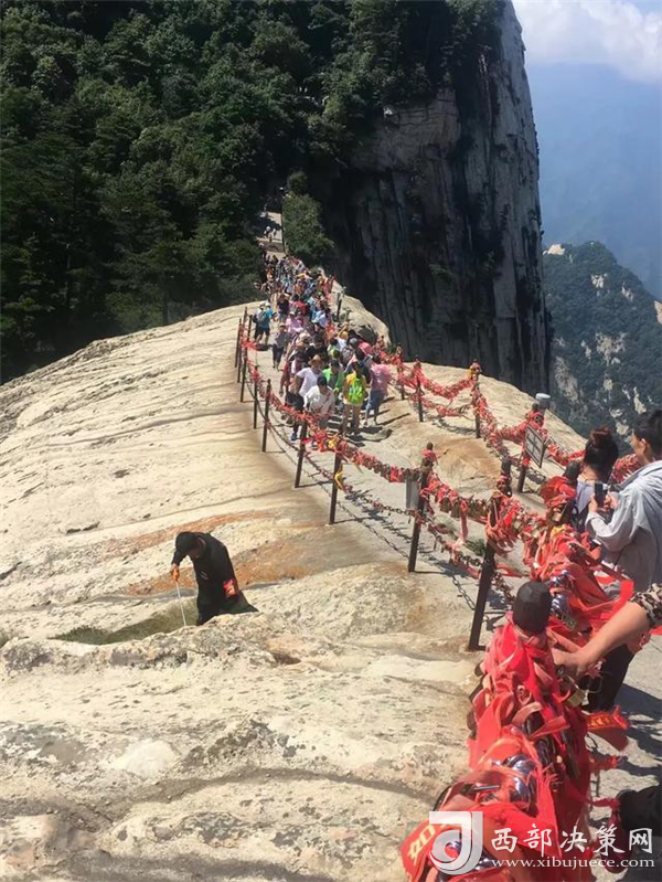 夏日驕陽,熱浪襲人。面對高溫“烤”驗,華山景區(qū)的工作人員依然堅守在戶外崗位上,用勤勞和忠誠詮釋奉獻的意義。