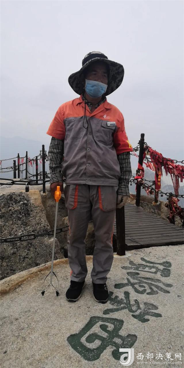 楊群社是景區(qū)一名環(huán)衛(wèi)工,負(fù)責(zé)華山西峰頂區(qū)域的衛(wèi)生保潔工作。為了給游客創(chuàng)造一個干凈整潔的游覽環(huán)境,熾熱的陽光下,楊群社在自己的區(qū)域內(nèi)不停地來回?fù)焓袄?/div>