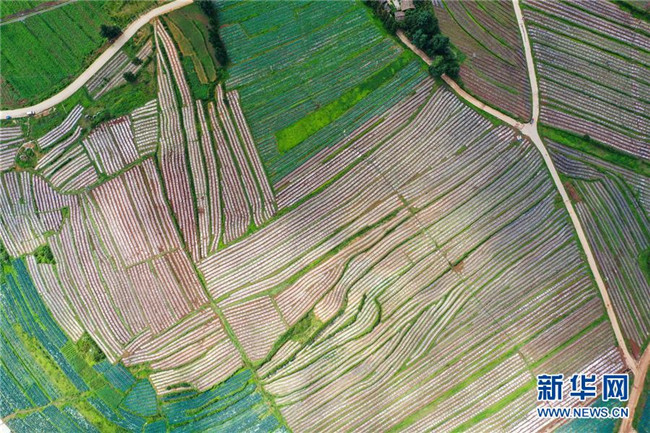 7月14日在貴州省畢節(jié)市威寧縣草海鎮(zhèn)中海村拍攝的蔬菜基地(無(wú)人機(jī)照片)。新華社發(fā)(羅大富 攝)