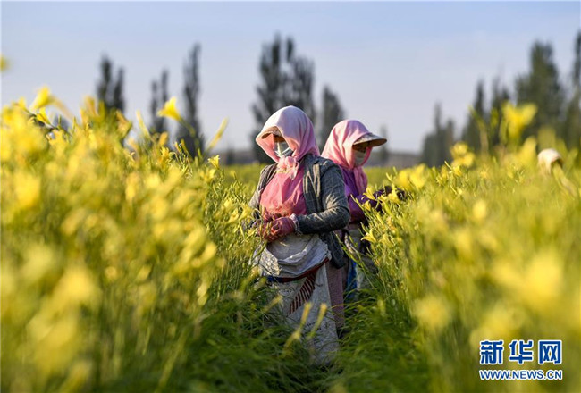 近日,寧夏鹽池縣惠安堡鎮(zhèn)的黃花菜進入采摘季,從空中望去,成片的黃花菜地碧波萬頃。近年來,鹽池縣將黃花菜產(chǎn)業(yè)作為脫貧攻堅的特色產(chǎn)業(yè),依托滴灌等技術(shù)擴大種植規(guī)模,培育專業(yè)合作社、深加工企業(yè),打造黃花菜產(chǎn)業(yè)鏈條。目前,鹽池縣黃花菜種植面積達8.1萬畝,產(chǎn)業(yè)年產(chǎn)值2.5億元,直接帶動全縣3000多黃花菜種植戶戶均年增收2萬多元。在黃花菜40多天的采摘期內(nèi),每天還可帶動1.5萬余人務(wù)工增收。