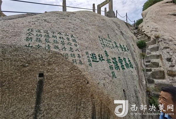 在登山沿途各景點、峭壁石巖上遍布著歷代文人墨客留下的墨寶,內(nèi)容十分豐富、風格各異、藝術(shù)價值非常高、教化意義也非常積極。摩崖石刻在無形中成為了蔚為壯觀的石刻藝術(shù)景觀,成為華山旅游文化一個十分突出的內(nèi)容。