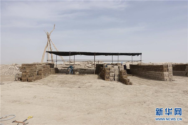 這是搶險加固中的樓蘭古城三間房遺址(7月27日攝,手機照片)。新華社發(fā)(中鐵西北科學研究院有限公司提供)