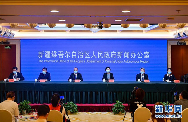 8月9日,新疆維吾爾自治區(qū)人民政府新聞辦公室在烏魯木齊市舉行新聞發(fā)布會。 新華社記者 宋彥樺 攝