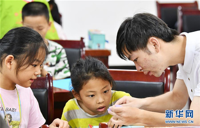 今年暑假期間,在貴州省銅仁市思南縣雙塘街道麗景社區(qū)易地扶貧搬遷安置點,來自北京有研集團和思南當?shù)氐闹驹刚邆兝檬钇跁r間,給安置點的孩子們進行音樂、體育、手工、安全教育等課程輔導,幫助搬遷戶照看孩子,讓孩子們在學習中度過一個快樂而有意義的暑假。