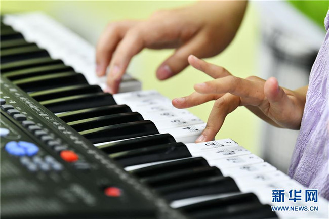 8月13日,貴州省思南縣雙塘街道麗景社區(qū)易地扶貧搬遷安置點的孩子在上音樂課。新華社記者 楊文斌 攝
