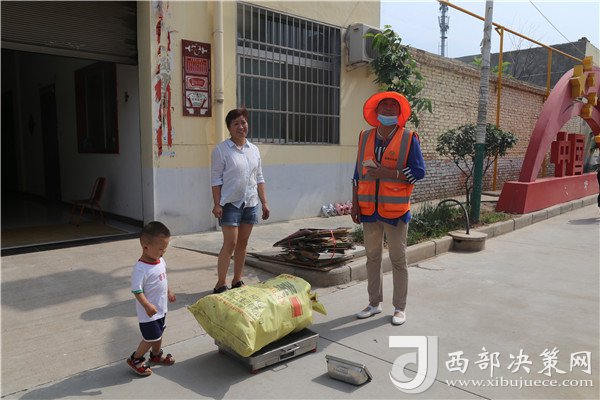 環(huán)衛(wèi)工人吳金玲對(duì)可回收利用垃圾進(jìn)行稱重
