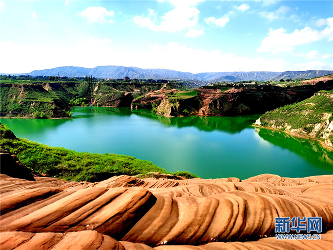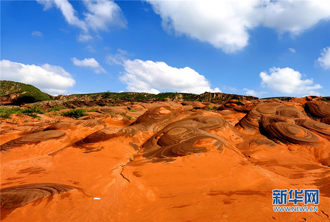 8月19日拍攝的陜西省榆林市靖邊縣龍州鎮(zhèn)丹霞地貌景區(qū)。樊悅攝