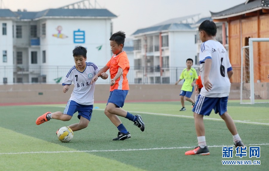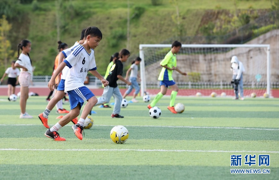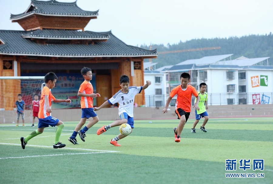 學生們在三江侗族自治縣古宜鎮(zhèn)江川小學訓練足球。