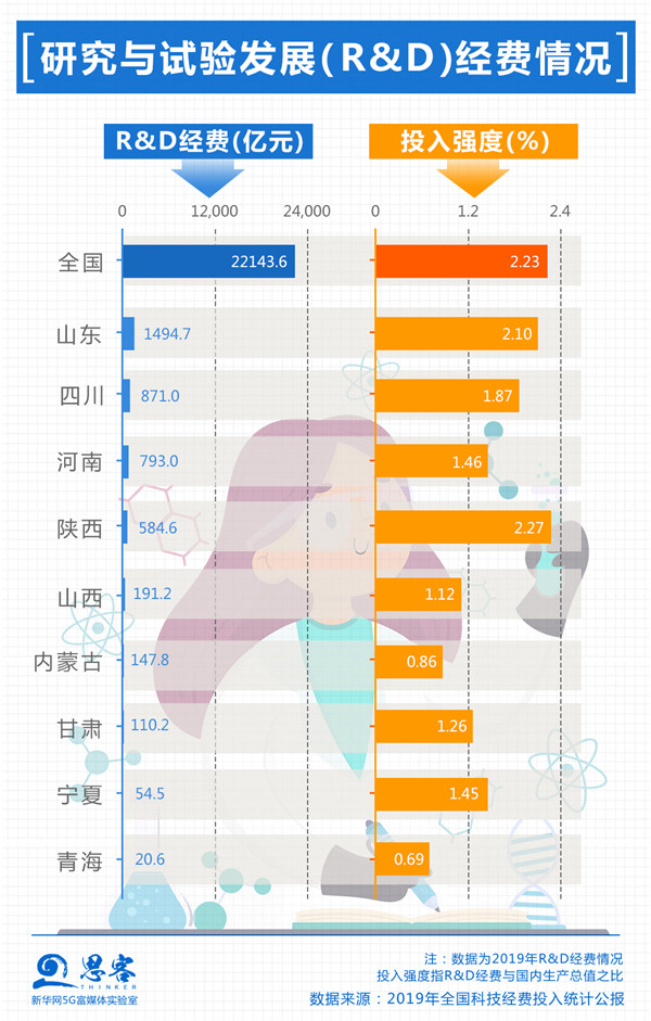 同東部沿海地區(qū)、南方省份相比,黃河流域創(chuàng)新競爭壓力巨大,創(chuàng)新要素“孔雀東南飛”的趨勢嚴峻。2019年,九省區(qū)內(nèi)只有陜西的R&D經(jīng)費投入強度高于全國平均水平。高端人才、技術勞動力、產(chǎn)業(yè)資本等關鍵要素外流態(tài)勢仍在持續(xù),因此黃河流域在新舊動能轉換上面臨困境。