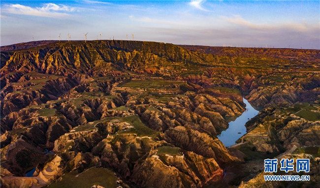 靖邊縣龍洲鎮(zhèn)波浪谷丹霞景區(qū)晨景(9月24日攝,無人機照片)。新華社記者 陶明 攝