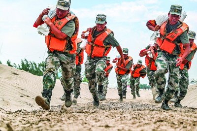 7月18日,江西九江柴桑區(qū)江洲鎮(zhèn)江新洲堤團(tuán)洲村突發(fā)險情,陸軍第71集團(tuán)軍某旅工兵連黨員突擊隊迅速出動。新華社發(fā)