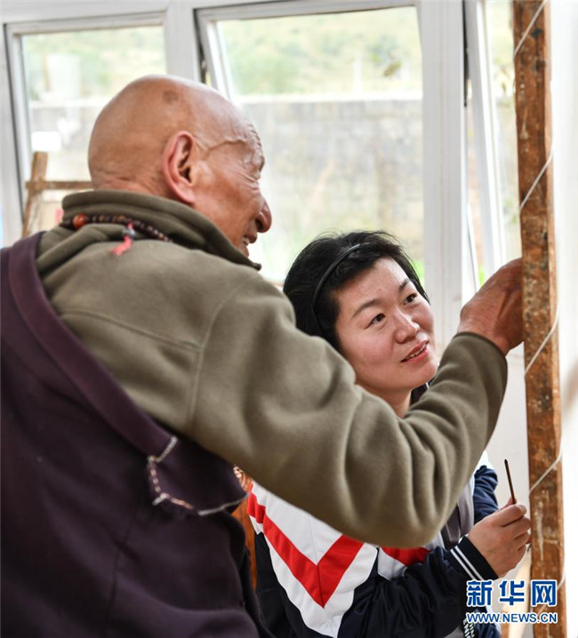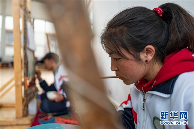 近年來,西藏大力發(fā)展現(xiàn)代職業(yè)教育,為打贏脫貧攻堅戰(zhàn)提供了技能保障。作為非物質(zhì)文化遺產(chǎn)傳承人,88歲的嘎瑪?shù)吕赵诓际锌ㄈ魠^(qū)嘎瑪鄉(xiāng)成立了民族手工藝培訓基地,使民族手工藝從家族作坊式的生產(chǎn)向集中生產(chǎn)轉(zhuǎn)變。精湛的手工藝品逐漸走出了山溝,也帶動群眾走上了致富路。目前,嘎瑪?shù)吕展灿袑W員460名,其中112名曾是建檔立卡貧困戶,去年人均年收入達到20萬元左右。新華社記者 普布扎西 攝