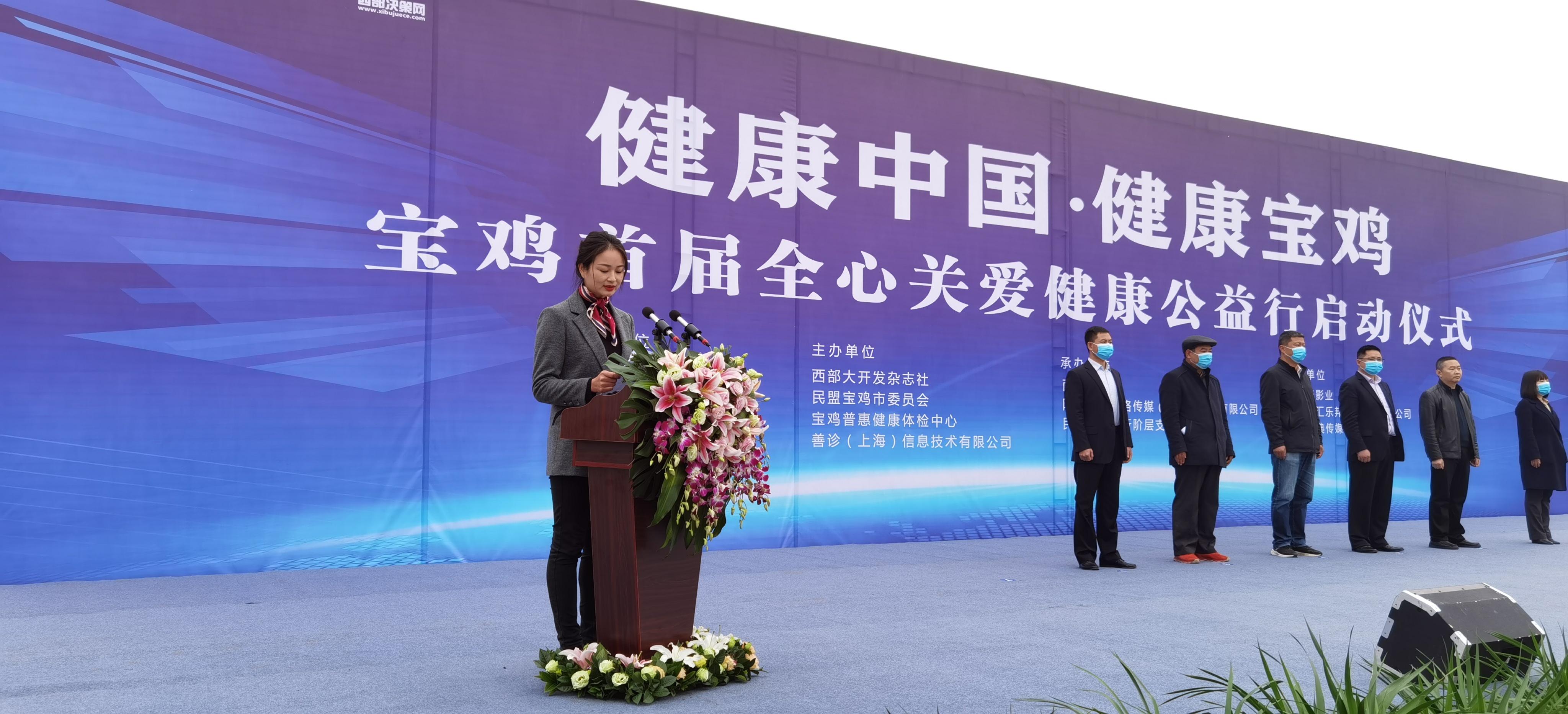 11月11日,寶雞首屆全心關(guān)愛(ài)•健康公益行啟動(dòng)儀式在寶雞市行政中心廣場(chǎng)舉行。本次活動(dòng)由陜西省委網(wǎng)信辦指導(dǎo),西部大開(kāi)發(fā)雜志社、民盟寶雞市委員會(huì)、寶雞普惠健康體檢中心、善診(上海)信息技術(shù)有限公司主辦。西部決策網(wǎng)、陜西廣電網(wǎng)絡(luò)傳媒(集團(tuán))股份有限公司、民盟寶雞市新階層支部承辦。蒙太奇影業(yè)、陜西德匯樂(lè)邦科技信息有限公司、陜西經(jīng)典傳媒有限公司協(xié)辦。參加此次活動(dòng)的有陜西省委網(wǎng)信辦、寶雞市委網(wǎng)信辦,西部大開(kāi)發(fā)雜志社、民盟寶雞市委員會(huì)、寶雞市委宣傳部、寶雞市公安局、寶雞市公安局金臺(tái)分局、寶雞甘肅商會(huì)、蒙太奇影業(yè)、西部決策網(wǎng)等單位相關(guān)同志,抗疫先進(jìn)、務(wù)工人員、環(huán)衛(wèi)工人、公益團(tuán)隊(duì)、社區(qū)居民、公安民警等嘉賓代表參加了啟動(dòng)儀式。寶雞電視臺(tái)主持人馬銘主持了啟動(dòng)儀式。