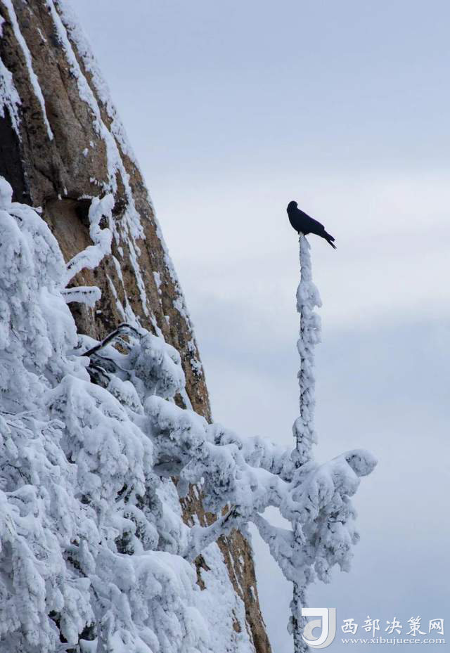 華山處處是無窮的魅力,正值冬季,寒風(fēng)蕭蕭,到處是枯木落葉,而冬季的華山確有“雪海”、“雪松”、“冰掛”、“冰瀑”、“冰雕”等奇景。漫山飄雪中,偶然碰到一只動物,透出桀驁不馴的姿態(tài),欣賞雪景之余讓我們對這里更心生好奇。