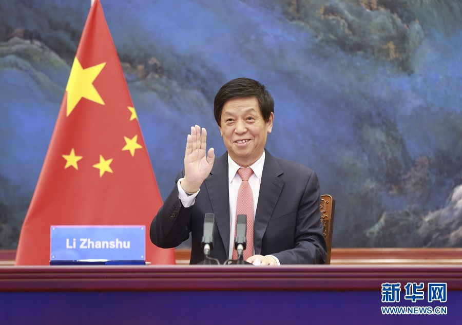 1月18日,全國人大常委會委員長栗戰(zhàn)書在北京人民大會堂出席全國人大和柬埔寨國會視頻交流活動開幕式?!⌒氯A社記者 丁林 攝