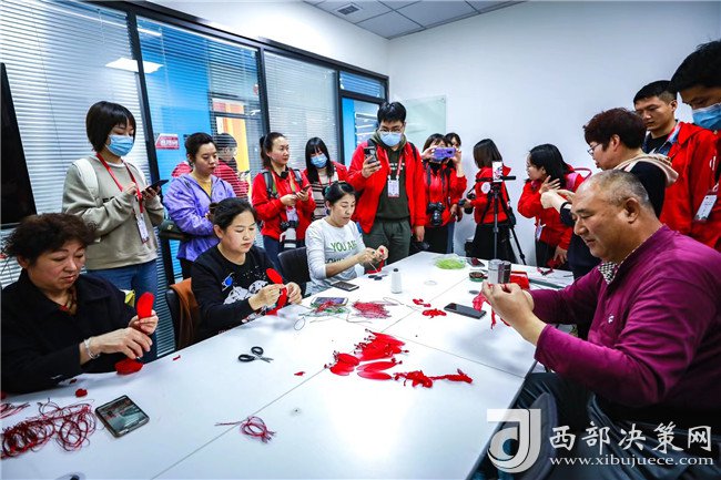 西部決策網訊 一折、一卷、六朵花瓣整齊羅列,細鐵絲緊緊繞圈固定,一朵火紅的手工花便成型了。“這個是我們的一些手工藝品,都是有延安特色的,如果你們想學的話,隨時來,我們這里免費培訓。”3月30日,在延安市寶塔區(qū)電商直播融合孵化服務中心的直播間里,60歲的退休工人董智玲正在直播間里給網友直播手工藝品制作,引來了眾多記者的圍觀。