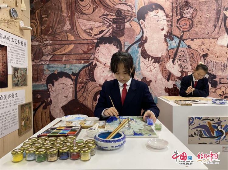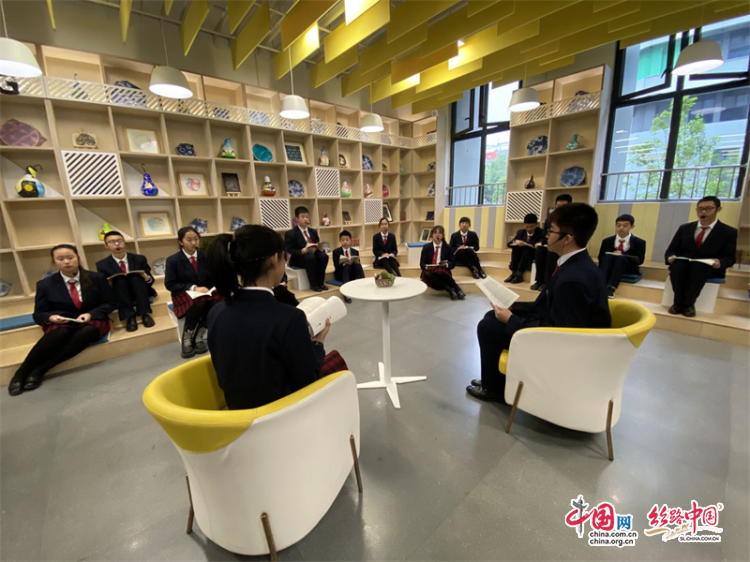 隨后,媒體代表們參觀了學(xué)校思維碰撞、巖彩壁畫、未來校園、牛仔花園等特色展區(qū)。在學(xué)校朗讀角,七年級的張語桐手捧一本《失群之鳥》詩集,看得入迷。她喜歡看科幻小說和人物傳記,開放的讀書角就成了她和小伙伴常來的地方,位于教室另一個側(cè)的“思維碰撞”讀書分享區(qū),也隨時可以跟同學(xué)們交流讀書心得。