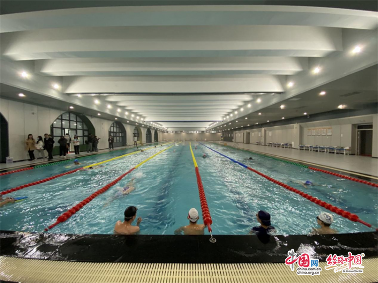 在學(xué)校室內(nèi)游泳館,該校體育老師介紹,泳池是標(biāo)準(zhǔn)的五條道50米長池,采用智能水循環(huán)系統(tǒng),定時加溫、消毒,保證水質(zhì)干凈。學(xué)校還有按國家標(biāo)準(zhǔn)建設(shè)的籃球場,田徑場,各項(xiàng)體育設(shè)施非常先進(jìn)。