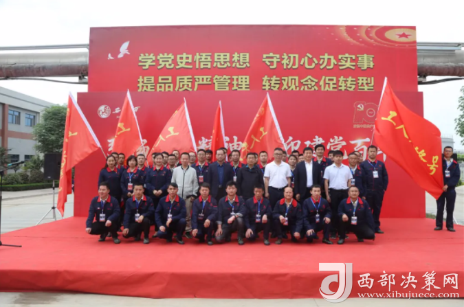 與會(huì)領(lǐng)導(dǎo)為各參賽單位授予“工人先鋒號(hào)”賽旗