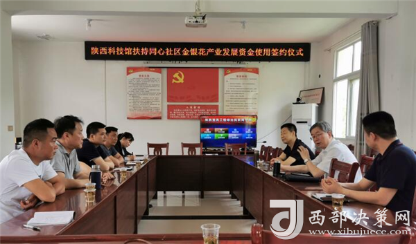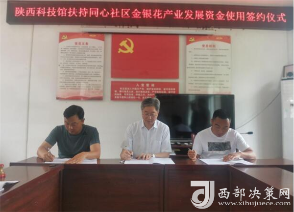 實(shí)地調(diào)研結(jié)束,在中廠鎮(zhèn)同心社區(qū)進(jìn)行了陜西科技館扶持同心社區(qū)金銀花產(chǎn)業(yè)發(fā)展資金使用框架協(xié)議簽約儀式。陜西科學(xué)技術(shù)館館長(zhǎng)王曉東、同心社區(qū)書記王順明、白河縣沐之然農(nóng)業(yè)綜合開發(fā)有限公司監(jiān)事王利群共同簽署了銀花產(chǎn)業(yè)發(fā)展資金使用框架協(xié)議,標(biāo)志著以金銀花產(chǎn)業(yè)發(fā)展為龍頭鄉(xiāng)村振興工作進(jìn)入快速發(fā)展階段。