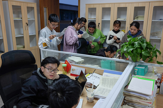 4月7日,晚自習(xí)時,學(xué)生們擠在辦公室里找老師問問題。