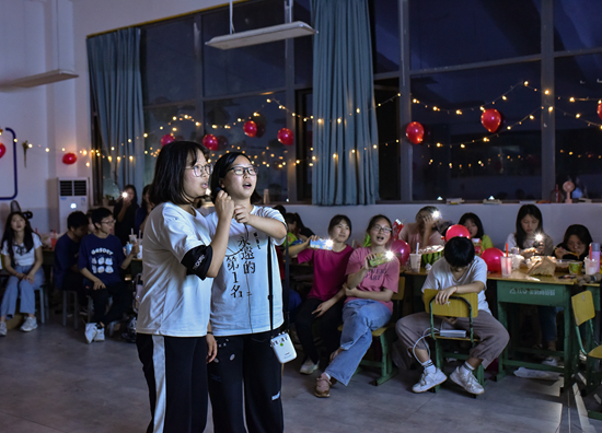 班上有15名學(xué)生來自同一個應(yīng)屆班級,這種陪伴在一定程度上緩解了他們的心理壓力。和我的高中生活相比,這里輕松多了:不公開考試排名,不會將高考生排除在學(xué)校的文體活動之外,女孩子們可以化妝、留長發(fā),還有人穿著漢服來上課。
