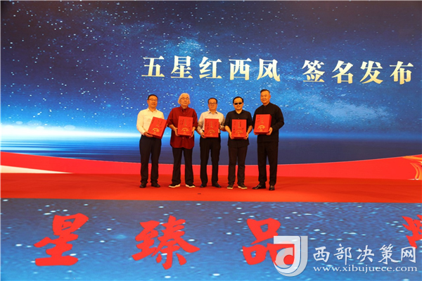國務院首批特殊津貼專家、西北大學中國文明史研究院院長孫皓暉,陜西師范大學歷史文化學院教授、博士生導師于賡哲,陜西省工信廳原副巡視員、陜西省輕工業(yè)協(xié)會原會長張鑒,西鳳集團公司黨委書記、董事長,股份公司董事長張正,陜西禧福祥商貿(mào)有限公司董事長王延安共同上臺為五星紅西鳳簽名,宣告五星紅西鳳正式上市發(fā)布,西鳳酒的高端化之旅再上新臺階。