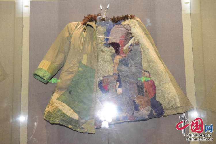 “大家看,這是八師一二一團(tuán)第一代軍墾戰(zhàn)士王德明的軍大衣,這件軍大衣上面一共有著296塊補(bǔ)丁。現(xiàn)如今,它既是國(guó)家一級(jí)革命文物,也是我們博物館的鎮(zhèn)館之寶。在當(dāng)年進(jìn)疆初期,軍墾戰(zhàn)士們?yōu)榱斯?jié)約資金用于新疆第一批工業(yè)建設(shè),將一年發(fā)一套的軍大衣改為兩年發(fā)一套、三年發(fā)一套,把已經(jīng)磨爛的軍裝縫縫補(bǔ)補(bǔ)了數(shù)次,展現(xiàn)出軍墾戰(zhàn)士們吃苦耐勞、無(wú)私無(wú)畏的奉獻(xiàn)精神。”在新疆兵團(tuán)軍墾博物館二樓展廳,講解員張楠指著一件里里外外補(bǔ)滿不同顏色補(bǔ)丁的軍大衣介紹道。