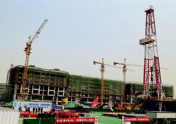 西安市周至縣錦華苑地?zé)峒泄犴椖块_鉆現(xiàn)場