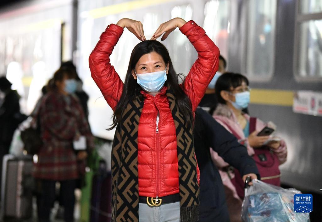 10月30日,載有額濟(jì)納旗滯留游客的列車(chē),抵達(dá)鄂爾多斯火車(chē)站。新華社發(fā)