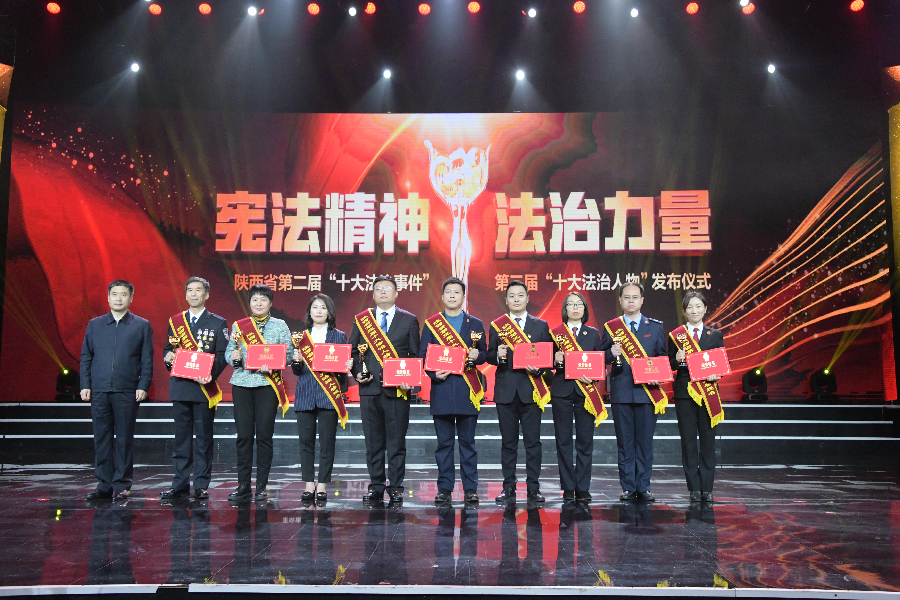 發(fā)布儀式現(xiàn)場播放了“十大法治事件”“十大法治人物”及提名獎的先進(jìn)事跡短片,揭曉了陜西省第二屆“十大法治事件”、第三屆“十大法治人物”及提名獎獲得者。“全國首創(chuàng)黨委(黨組)書記點評法治工作機(jī)制切實夯實‘一把手’履行法治建設(shè)責(zé)任”等10個事件被評為第二屆“十大法治事件”、“陜西出臺自由貿(mào)易試驗區(qū)條例助推自貿(mào)區(qū)高質(zhì)量發(fā)展”等10個事件被評為第二屆“十大法治事件”提名獎,西安交通大學(xué)法學(xué)院二級教授馬治國等10名同志被評為第三屆“十大法治人物”、咸陽市中級人民法院速裁中心主任李春麗等10名同志被評為第三屆“十大法治人物”提名獎。