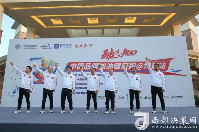 張正等5位嘉賓共同為西鳳酒協(xié)辦的“勵(lì)志100”中國品牌加油健康跑鳴響發(fā)令槍