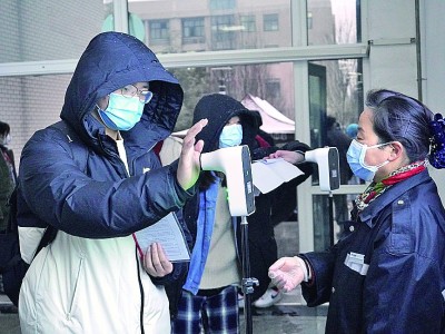 12月25日,考生在西安石油大學考點測溫。趙喜軍攝/光明圖片