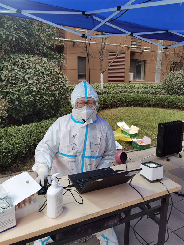 “我承諾:聽從黨的召喚,沖鋒在前,無私奉獻(xiàn)。”寒風(fēng)中,身著白色防護(hù)服的青年職工劉拓,在成為一名光榮的抗“疫”志愿者后,這位年輕的爸爸與9個月大的兒子每天相處時間極少。為了守護(hù)西安這座城,他把不到1歲的兒子交由父母照顧,自己義無反顧加入到抗“疫”志愿服務(wù)中。劉拓所在的航天基地啟航路社區(qū)大華錦繡前程小區(qū)為管控區(qū),他每天主要負(fù)責(zé)1500人次的核酸檢測信息登記、樓棟封控及困難群眾摸排、隔離戶消殺記錄巡查、生活物資分發(fā)等工作。為了能打贏這場疫情阻擊戰(zhàn),他每天都是起早貪黑,再苦再累也不怕。當(dāng)摸排的隔離戶老人對他細(xì)心叮囑:“娃,你也要注意安全,讓家里人別操心。”,當(dāng)見到隔著窗戶對他喊“叔叔加油!西安加油!”的小男孩等這些溫暖瞬間時,劉拓分外感動。“有一分光,便發(fā)一分熱,我們青春抗疫,志愿無悔。在這場沒有硝煙的戰(zhàn)場上,人人都是參與者,人人皆是戰(zhàn)斗員。相信在大家共同努力下,我們一定會取得戰(zhàn)‘疫’的最終勝利!”劉拓這樣說。