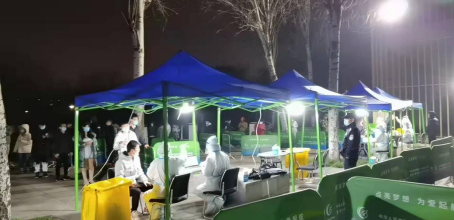 檢測過程中,所有檢測人員都身著防護(hù)服,為了節(jié)約醫(yī)療物資,避免讓大家在寒風(fēng)中等待,志愿者幾乎不吃飯、不喝水,連續(xù)工作直到檢測結(jié)束。也正因?yàn)橛辛怂麄兊膱?jiān)守,西電疫情防控工作才有了堅(jiān)強(qiáng)保障。