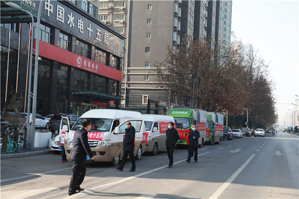 西部決策網(wǎng)訊 “出發(fā)!”1月11日下午14:00,隨著公司黨委書(shū)記、董事長(zhǎng)梁向峰一聲令下,滿載 3000斤面粉、3000斤大米、 1000斤食用油、1000斤各類蔬菜、500斤大肉、200斤牛肉、200斤羊肉、400箱牛奶酸奶、500斤速凍水餃、1000箱衛(wèi)生紙、2200瓶洗發(fā)露、2200袋洗衣液等抗疫生活物資的8輛貨車,再次從中國(guó)水電十五局水電大廈樓前出發(fā),送往陜西職業(yè)技術(shù)學(xué)院。