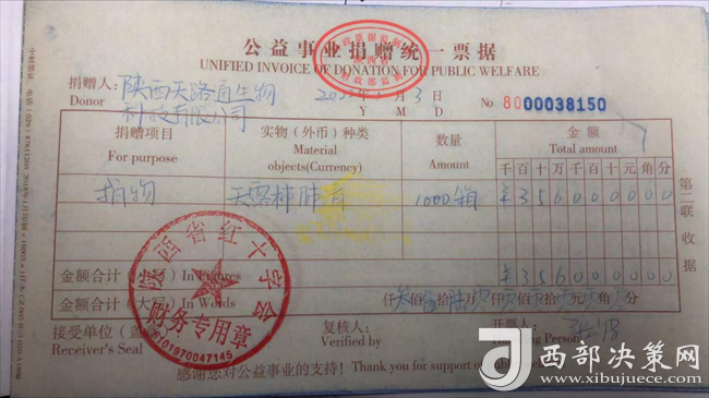此次捐贈(zèng)的物資是陜西天路通生物科技有限公司聯(lián)合省內(nèi)多家高校產(chǎn)教聯(lián)盟,歷時(shí)六年自主研發(fā)的“天露柿肺清”口服液,是一款經(jīng)純天然水果提取,無(wú)任何添加劑的果汁飲料。貨車裝有1000箱,共計(jì)240000支口服液產(chǎn)品,價(jià)值約360萬(wàn)人民幣。