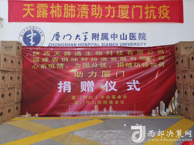 而這也并不是“天露柿肺清”口服液第一次出現(xiàn)在抗疫第一線。早在2021年9月29日,陜西天路通生物科技有限公司就為廈門中山醫(yī)院捐獻(xiàn)過(guò)一批抗疫物資,捐贈(zèng)了價(jià)值20多萬(wàn)“天露柿肺清”口服液作為抗疫物資,支援中山醫(yī)院的一線醫(yī)護(hù)人員們,助力廈門抗疫。當(dāng)時(shí)正值廈門中山醫(yī)院抗擊新冠肺炎疫情的緊要關(guān)頭,天路通生物科技有限公司及時(shí)伸出援助之手,無(wú)償捐贈(zèng)抗疫物資,為打贏疫情防控阻擊戰(zhàn)增強(qiáng)了信心和力量。病毒無(wú)情,八方友愛(ài),仁者愛(ài)人,彰顯出企業(yè)的愛(ài)國(guó)情懷和社會(huì)責(zé)任,展現(xiàn)了人間大愛(ài),脈脈溫情。